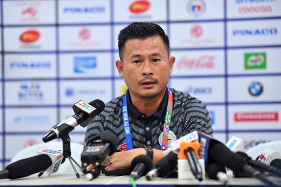 HLV Stephen Ng Heng Seng tại buổi họp sau trận đấu. |