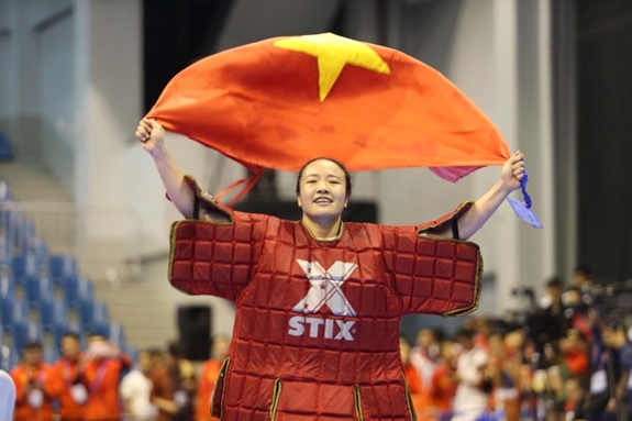 VĐV Nguyễn Thị Cẩm Nhi giành HCV môn Arnis. |