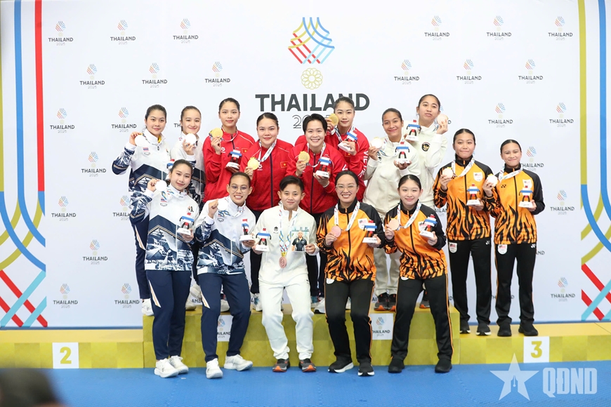 Đoàn thể thao Việt Nam “mở hàng” huy chương vàng (HCV) ngày thi đấu 11-12 bằng chiến thắng thuyết phục của các võ sĩ Nguyễn Thị Phương, Nguyễn Ngọc Trâm, Hoàng Thị Thu Uyên, Bùi Ngọc Nhi ở chung kết kata đồng đội nữ, môn karate.