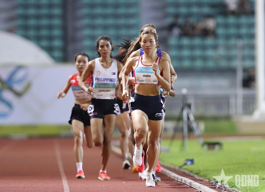 Tối 13-12, vận động viên Nguyễn Thị Oanh và Lê Thị Tuyết tranh tài ở cự ly 5.000m nữ môn điền kinh SEA Games 33.