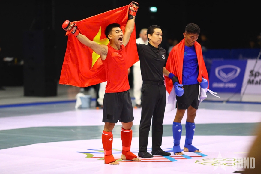 * Môn MMA, Quàng Văn Minh xuất sắc đánh bại Tan Yee Siang của Malaysia bằng một cú TKO đầy kỹ thuật ở chung kết truyền thống hạng 65kg nam để mang về tấm HCV cho thể thao Việt Nam. Tiếp đó Trần Ngọc Lượng mang về tấm HCV thứ 2 ở hạng dưới 60kg. Mặc dù đạt kết quả đáng khích lệ, tuy nhiên môn MMA do mới được bổ sung ở kỳ SEA Games này nên các thành tích ghi nhận sẽ không được tính vào bảng tổng sắp huy chương.