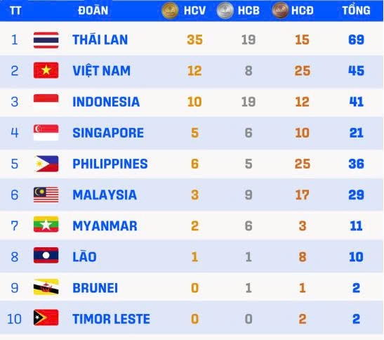 | Bảng xếp hạng huy chương cập nhật theo trang web chính thức của SEA Games 33. |