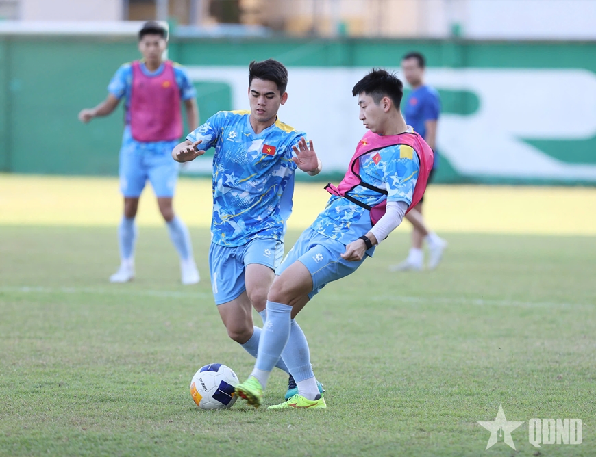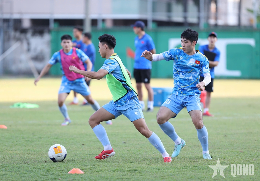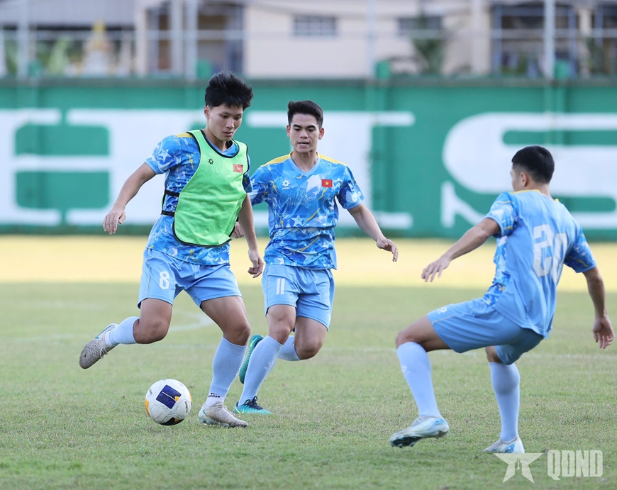 Chiều 8-12, đội tuyển U22 Việt Nam tiếp tục tập luyện nhằm chuẩn bị cho trận gặp U22 Malaysia tại lượt trận cuối bảng B môn bóng đá nam SEA Games 33.
