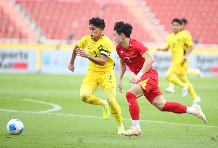 Pha lên bóng tấn công tốc độ của Đình Bắc ở trận U.22 Việt Nam thắng U.22 Malaysia 2-0.