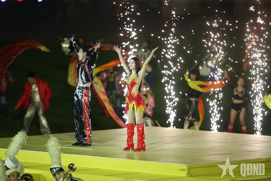 Sân khấu Rajamangala sôi động với chương trình biểu diễn nghệ thuật với chủ đề chính: “Âm thanh của nhà vô địch”. Hai nghệ sĩ nổi tiếng của Thái Lan là Tah-U Pittaya Saechua và ca sĩ Thung Kratae R-Siam (Trae Boonyaliang) xuất hiện, mang đến không khí lễ hội rực rỡ, tôn vinh tinh thần chiến thắng và khát vọng vươn lên của thể thao Đông Nam Á.