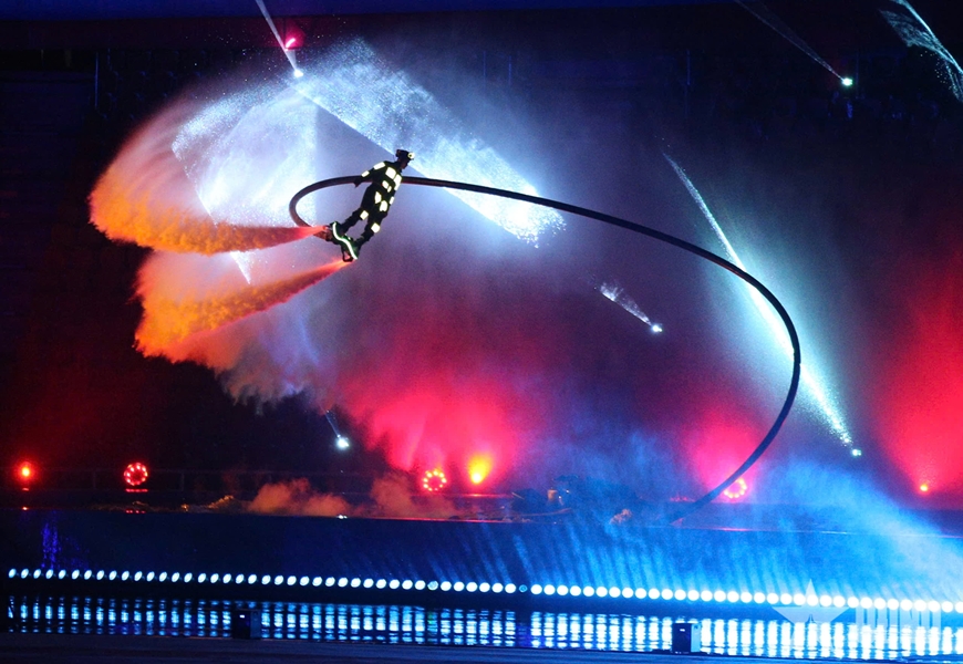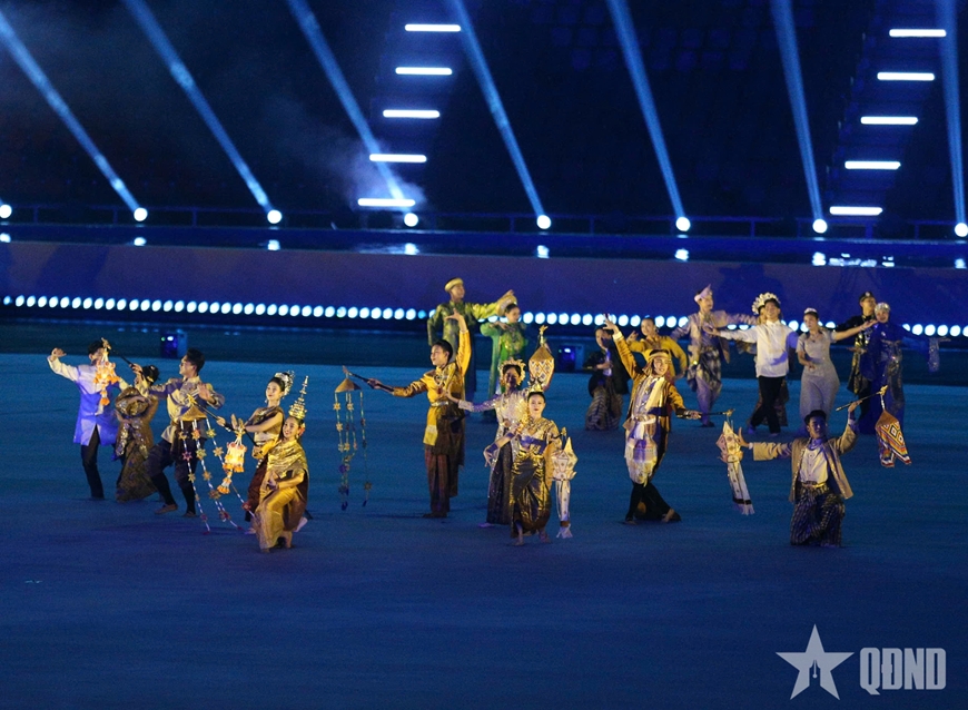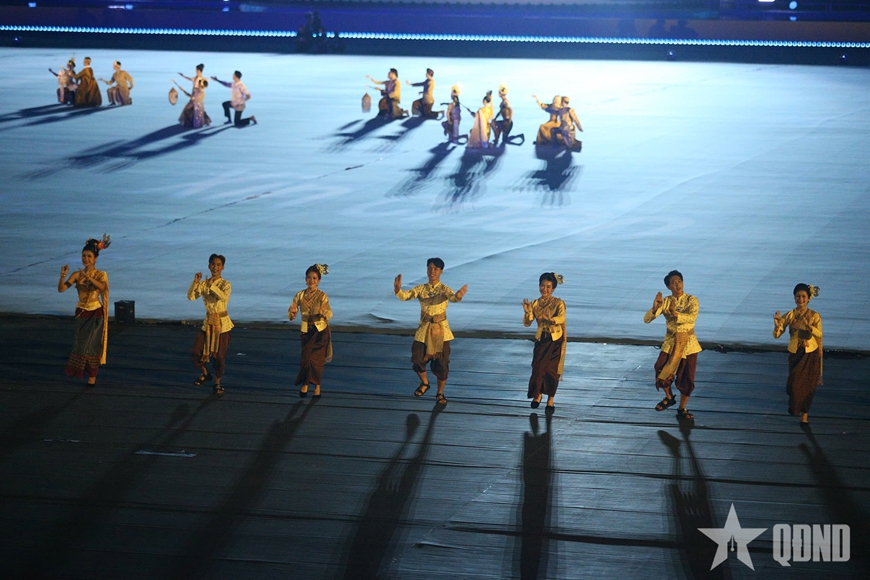 Dưới hỗ trợ của công nghệ và kỹ thuật, mặt sân Rajamangala giống như một biển cả, trong tiết mục “dòng sông hữu nghị”. Bằng sự đầu tư công phu, các tiết mục bơi nghệ thuật, biểu diễn mô tô nước diễn ra ngay trong sân vận động một cách đầy ngoạn mục.