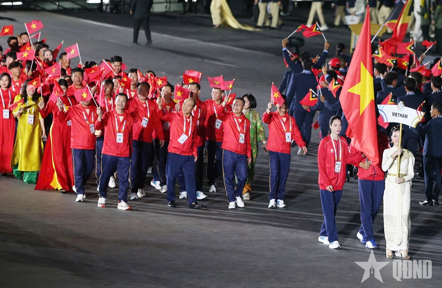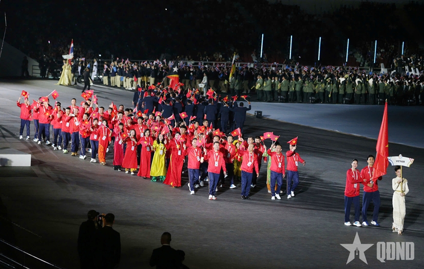 | Đại diện Đoàn thể thao Việt Nam tham gia diễu hành tại Lễ khai mạc SEA Games 33. Ảnh: VIỆT AN |