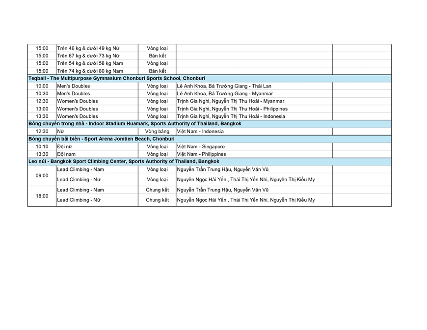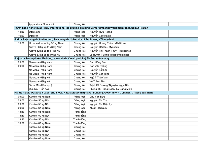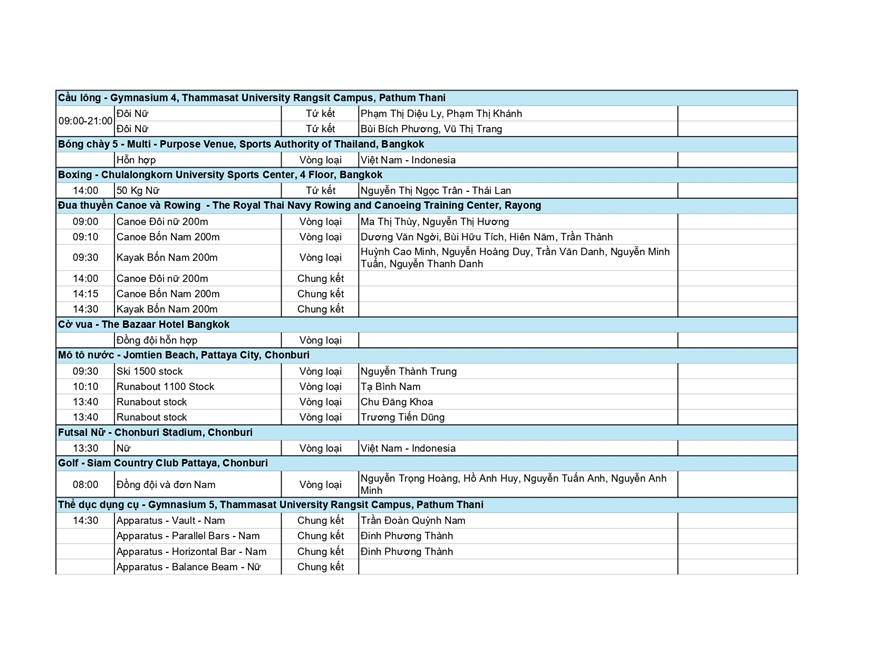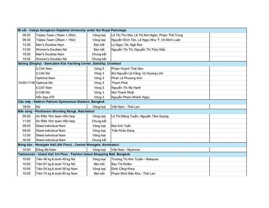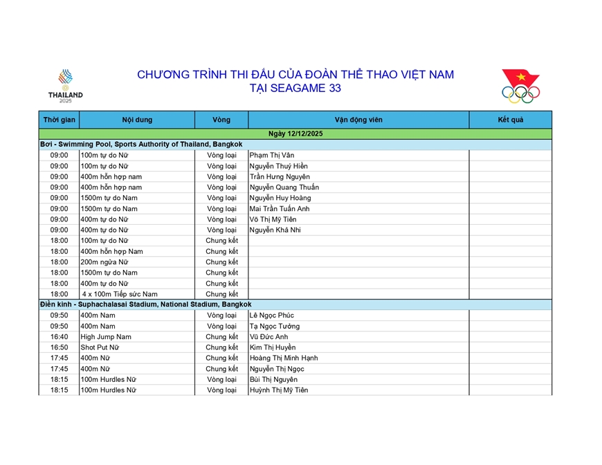 | Lịch thi đấu SEA Games 33 hôm nay (12-12) của Đoàn thể thao Việt Nam. |