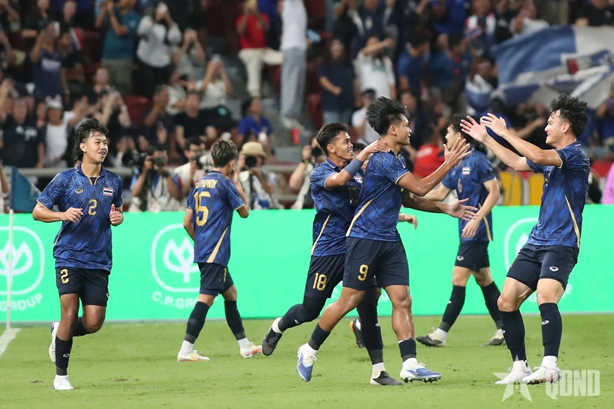 U22 Thái Lan ghi được 2 bàn thắng dẫn trước U22 Việt Nam trong hiệp 1. Ảnh: VIỆT AN
