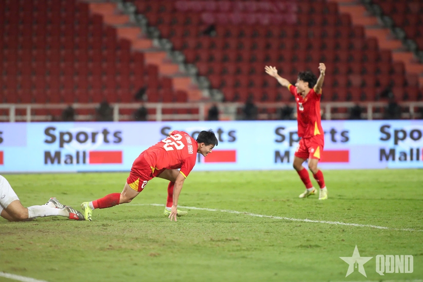 | Niềm vui của U22 Việt Nam khi Thanh Nhàn ghi bàn. Ảnh: VIỆT AN |