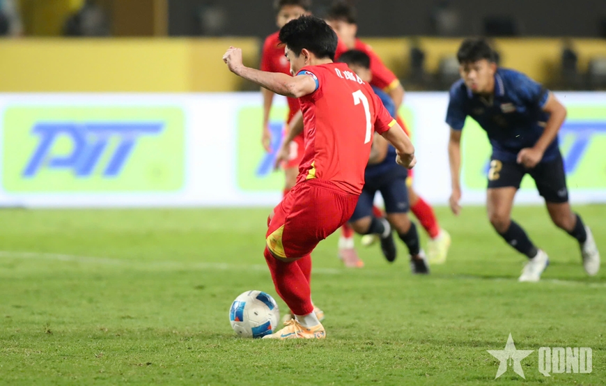Cuối cùng, những nỗ lực đó được cụ thể hóa bằng bàn thắng rút ngắn tỷ số xuống còn 1-2 ở phút 49 nhờ công của Đình Bắc trên chấm phạt đền. Trước đó, Đình Bắc đã có pha xâm nhập vòng cấm, thủ môn U22 Thái Lan đã phạm lỗi, trọng tài quyết định cho U22 Việt Nam được hưởng quả penalty.