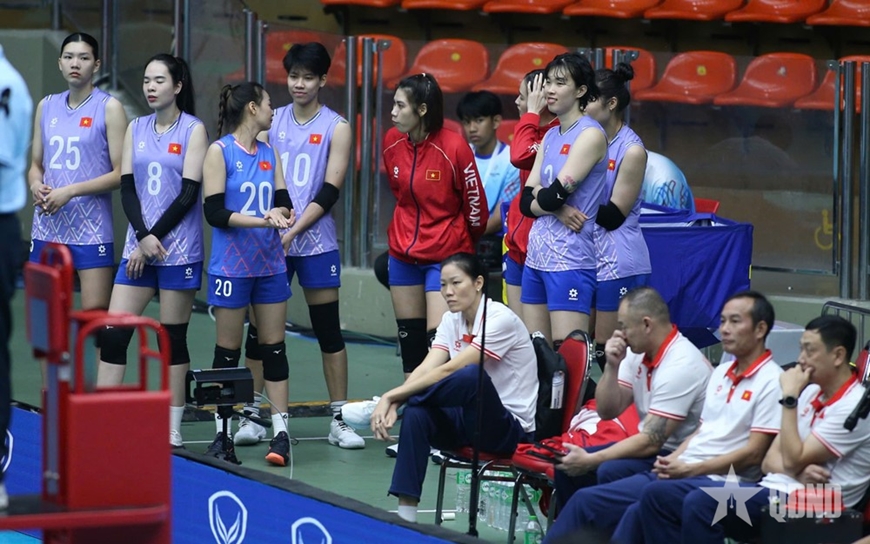 Sang set 2, huấn luyện viên Nguyễn Tuấn Kiệt tiếp tục điều chỉnh nhân sự khi tung Lê Thanh Thúy vào sân. Các tuyển thủ bóng chuyền nữ Việt Nam nhanh chóng khép lại set đấu với chiến thắng 25-5.