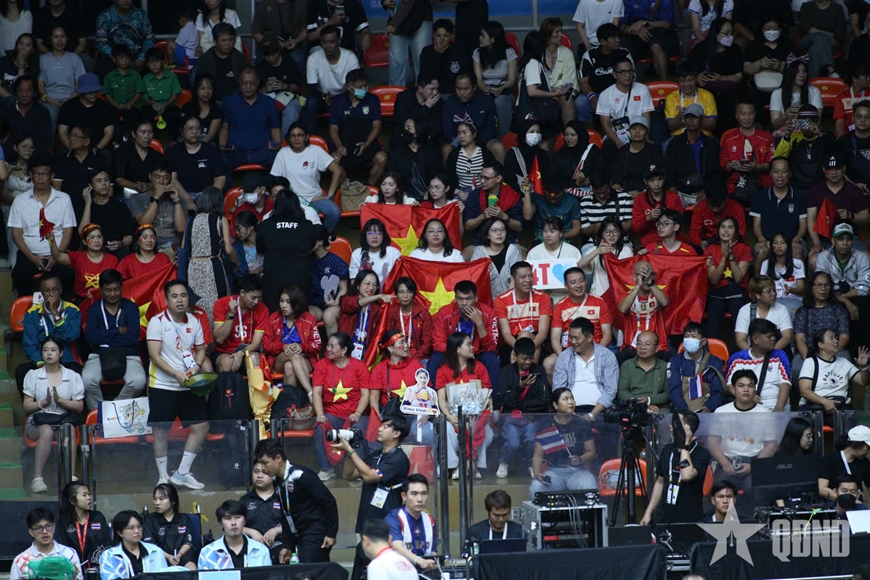 Tối 15-12, trận chung kết môn bóng chuyền nữ SEA Games 33 giữa đội tuyển Thái Lan và đội tuyển Việt Nam diễn ra trong bầu không khí sôi động.