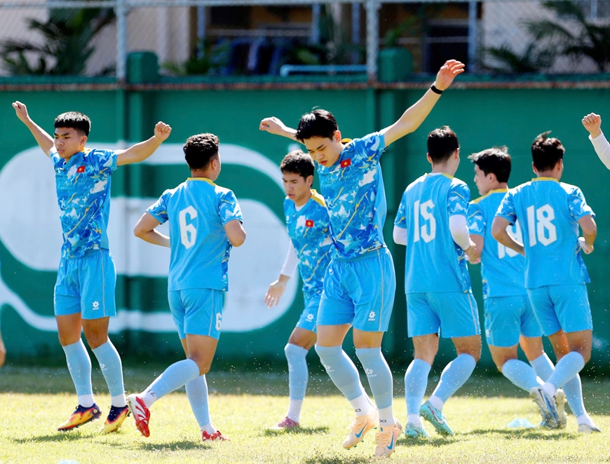 Trước buổi tập, tiền vệ Phạm Minh Phúc cho biết, sau một ngày nghỉ ngơi, tinh thần toàn đội rất thoải mái và tràn đầy quyết tâm hướng tới trận đấu tiếp theo.