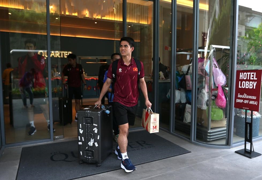 | Văn Khang rời khách sạn lên đường ra sân bay về nước. |