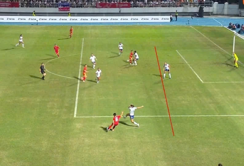 Tình huống quay chậm trên truyền hình cho thấy Bích Thùy còn đứng trên một hậu vệ cuối cùng của Philippines một khoảng khá xa. Thực tế này khiến quyết định căng cờ báo việt vị của trọng tài biên là cực kỳ khó hiểu.