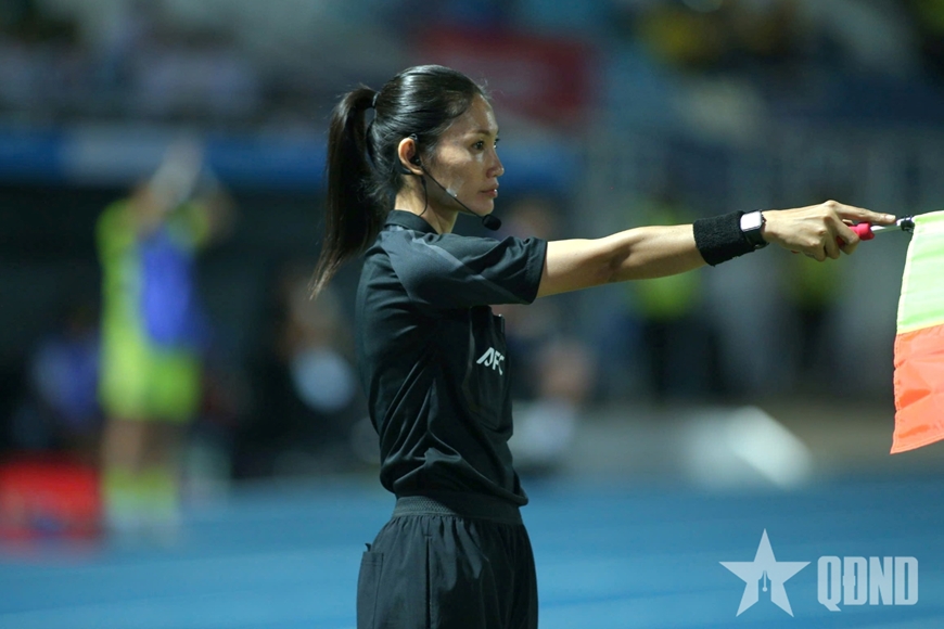 | Vẻ mặt thất thần của Bích Thùy khi thấy trọng tài biên căng cờ báo việt vị, từ chối bàn thắng rất đẹp của chị. Ảnh: VIỆT AN |