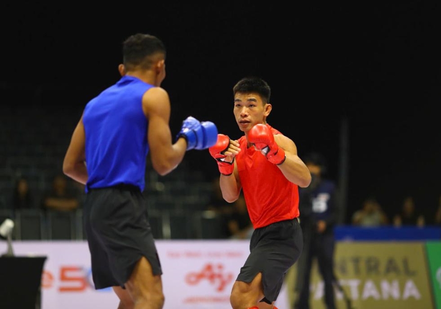 | VĐV Trần Ngọc Lượng đối đầu với đối thủ Alfiandi (Indonesia). Ảnh: VIỆT AN |