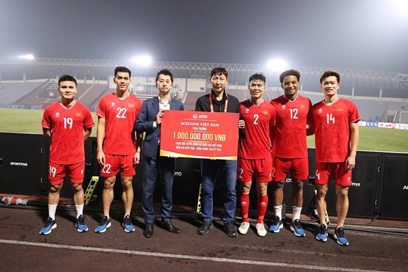 Với khoảnh khắc lịch sử này, Acecook Việt Nam đã quyết định trao thưởng 1 tỷ đồng cho đội tuyển, thể hiện sự động viên kịp thời và là món quà cổ vũ đầy ý nghĩa. Hành động này không chỉ là sự khích lệ tinh thần cho các cầu thủ mà còn là minh chứng cho cam kết đồng hành lâu dài của Acecook với bóng đá Việt Nam, trong suốt hành trình đầy thử thách này.