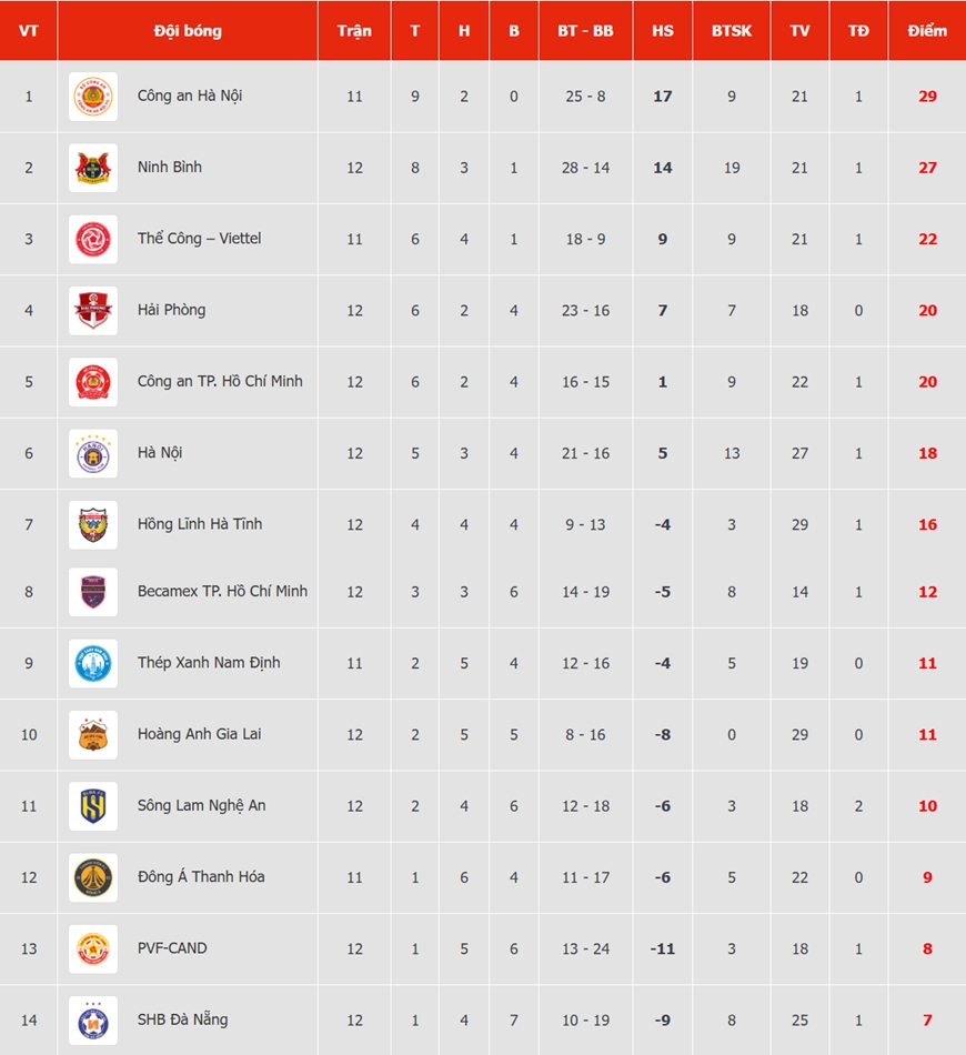 Thắng trận 3-2, Công an Hà Nội FC chiếm ngôi đầu bảng của Ninh Bình FC khi sở hữu 29 điểm và mới thi đấu 11 trận. Trong khi đó, Ninh Bình FC đã đá 12 trận sở hữu 27 điểm, xếp thứ nhì.