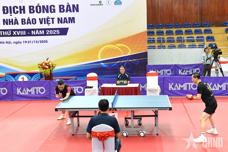 | Đội bóng bàn Báo Quân đội nhân dân giành Huy chương Vàng nội dung đôi nam có lãnh đạo. |