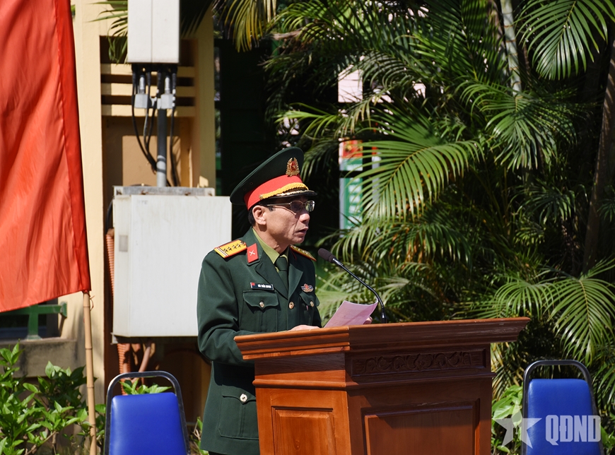 | Đại tá Bùi Tuấn Quynh, Phó chủ nhiệm Chính trị Bộ Tổng Tham mưu phát biểu khai mạc. |