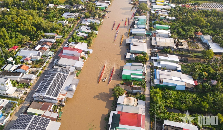 | Toàn cảnh giải đua ghe Ngo nhìn từ trên cao. |
