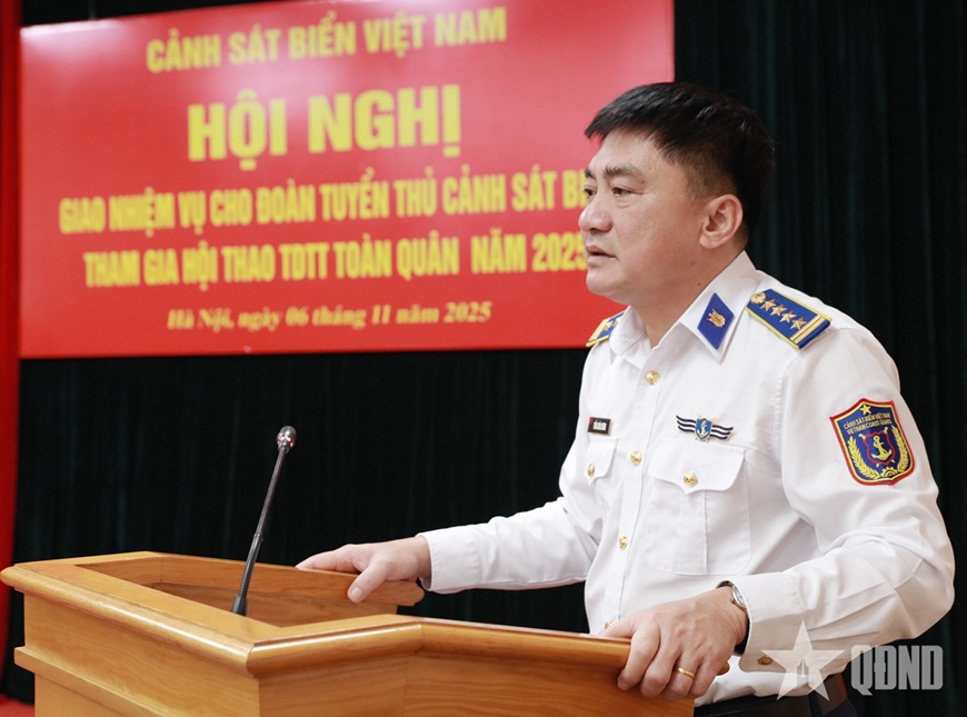 Đồng chí Phó tham mưu trưởng Cảnh sát biển Việt Nam yêu cầu toàn đoàn chấp hành nghiêm điều lệnh, kỷ luật của Quân đội, quy định của Cảnh sát biển Việt Nam; nghiên cứu, nắm chắc và thực hiện tốt điều lệ, quy tắc thi đấu, quy định của Ban tổ chức trong suốt quá trình tham gia hội thao.
