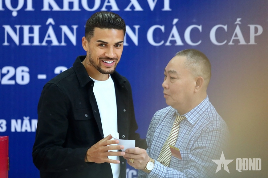 Ghi nhận tại điểm bầu cử thuộc phường Từ Liêm (Hà Nội), cầu thủ Đỗ Hoàng Hên (tên Brazil là Hendrio Araujo) hào hứng tham gia bầu cử đại biểu Quốc hội khóa XVI và đại biểu Hội đồng nhân dân các cấp nhiệm kỳ 2026-2031.
