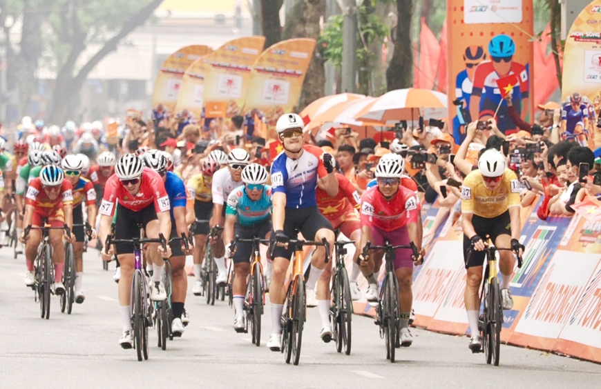 Ngày 5-4, Giải đua xe đạp toàn quốc Cúp Truyền hình TP Hồ Chí Minh với chủ đề "Non sông liền một dải" lần thứ 38 năm 2026 diễn ra chặng 3 với các vòng đua quanh hồ Hoàn Kiếm (Hà Nội), lộ trình 42,5km.