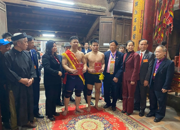 | Hai đô vật lễ thánh sau màn tranh giải nhất. |