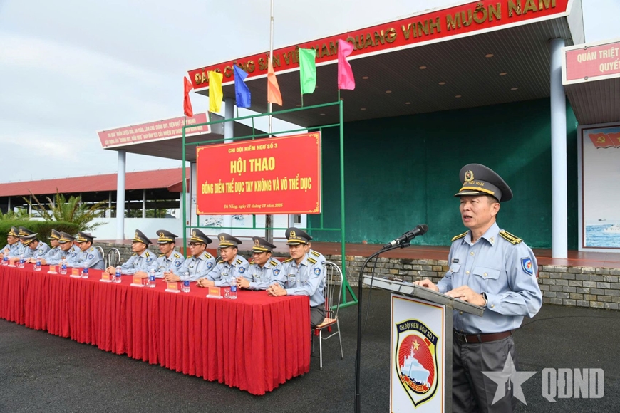 Chiều 11-12, tại TP Đà Nẵng, Chi đội Kiểm ngư số 3 tổ chức khai mạc Hội thao đồng diễn thể dục tay không và võ thể dục năm 2025. Đồng chí Đinh Văn Thìn, Phó chi đội trưởng Chi đội Kiểm ngư số 3 dự và chủ trì khai mạc.
