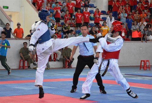 Thi đấu môn taekwondo trong Hội khỏe Phù Đổng năm 2016.