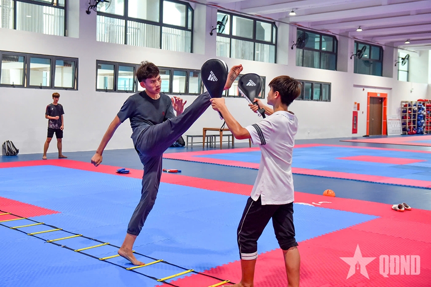 | Các vận động viên taekwondo hào hứng tập luyện tại nhà tập mới. Ảnh: PHAN ANH |