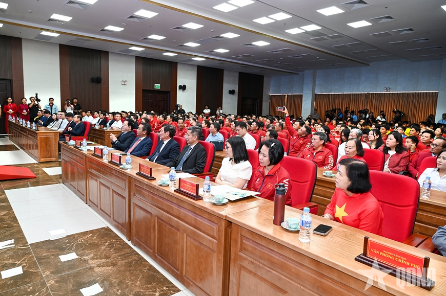 | Các đại biểu và vận động viên tham dự buổi lễ. |