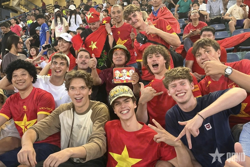 Chiều muộn trên sân Hàng Đẫy (Hà Nội), trong trận giao hữu của đội tuyển bóng đá Việt Nam với Bangladesh vừa diễn ra mới đây, giữa dòng người ngập tràn sắc đỏ trên các khán đài, xuất hiện một hình ảnh đầy xúc động. Ông Đinh Anh Tuấn-người đàn ông ngồi trên xe lăn, tay cầm ảnh Bác Hồ, xung quanh là rất nhiều cổ động viên người nước ngoài, cùng nhau hô vang theo nhịp trống hai tiếng “Việt Nam”.