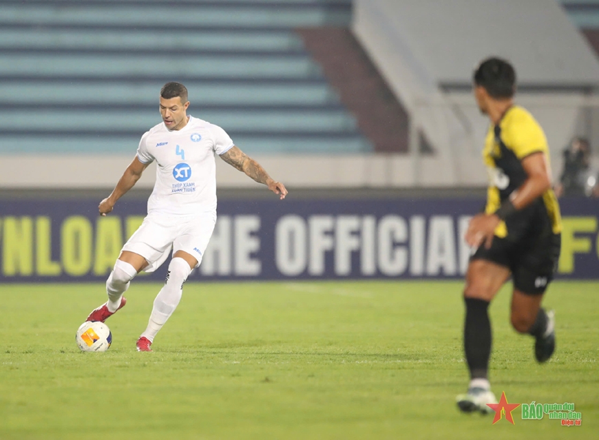 Hậu vệ Lucas (bên trái) của Thép Xanh Nam Định chưa đạt phong độ tốt nhất. Ảnh: LÂM THỎA