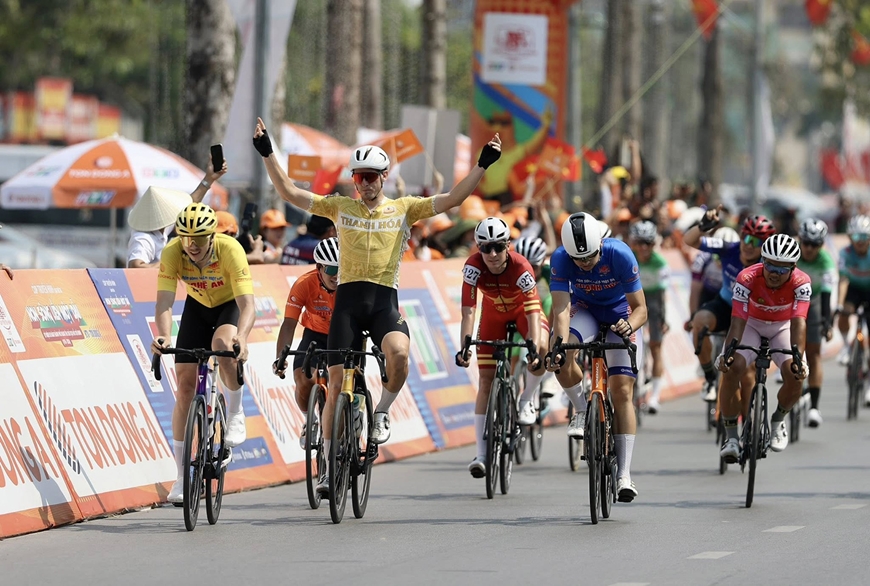 Anton Popov của đội Thanh Hóa tung cú nước rút mạnh mẽ, thắng chặng 6 Giải đua xe đạp toàn quốc Cúp Truyền hình TP Hồ Chí Minh với chủ đề Non sông liền một dải lần thứ 38 năm 2026.