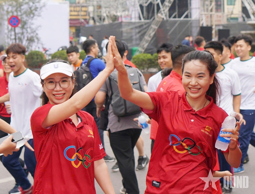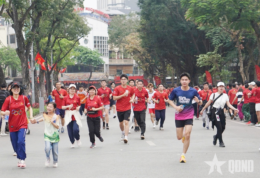 Sau nghi thức khai mạc, các đại biểu và người tham gia đã cùng chạy đồng hành, tạo nên không khí sôi nổi, lan tỏa tinh thần rèn luyện thể chất trong cộng đồng.