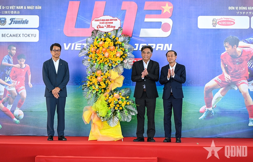Lãnh đạo TP Hồ Chí Minh tặng hoa chúc mừng Giải bóng đá Thiếu niên quốc tế Việt Nam - Nhật Bản lần thứ VII.