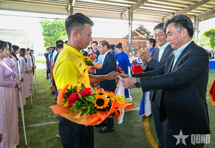 | Tặng hoa và cờ lưu niệm cho trọng tài và các đội bóng tham dự giải. |