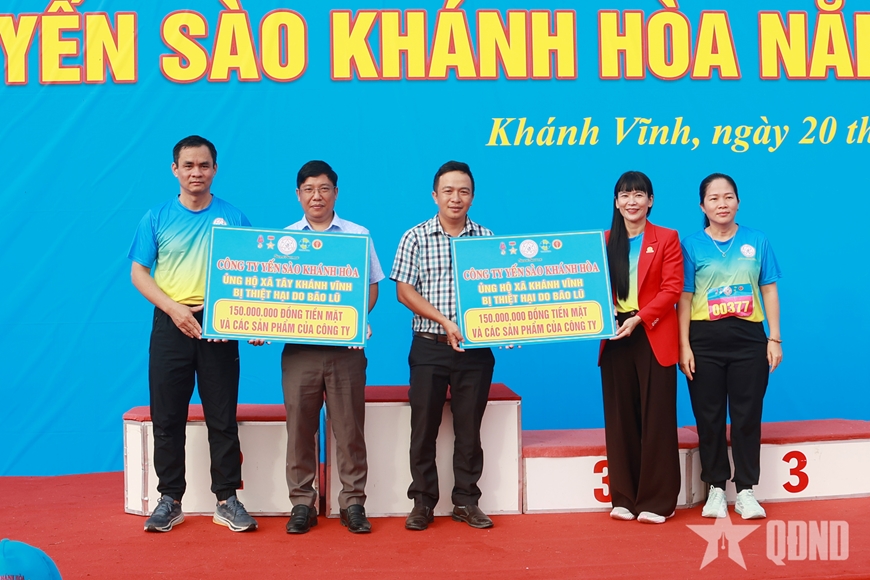 Dịp này, Công ty Yến sào Khánh Hòa trao số tiền 300 triệu đồng tặng 2 xã Khánh Vĩnh và Tây Khánh Vĩnh (mỗi xã 150 triệu đồng) cùng các sản phẩm của công ty, nhằm hỗ trợ người dân khắc phục hậu quả thiên tai do đợt mưa lũ vừa qua.