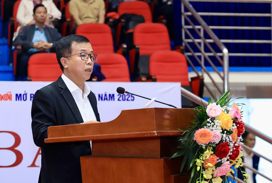 | Nhà báo Lại Bá Hà, Phó tổng biên tập Báo Hànộimới phát biểu khai mạc. Ảnh: QUANG THÁI |