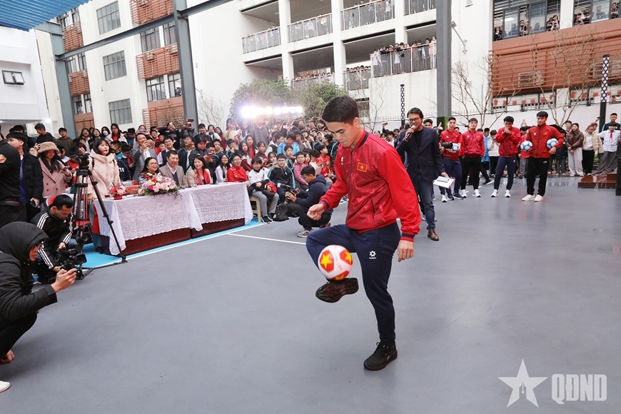 | Cầu thủ U23 Việt Nam tâng bóng kỹ thuật. |
