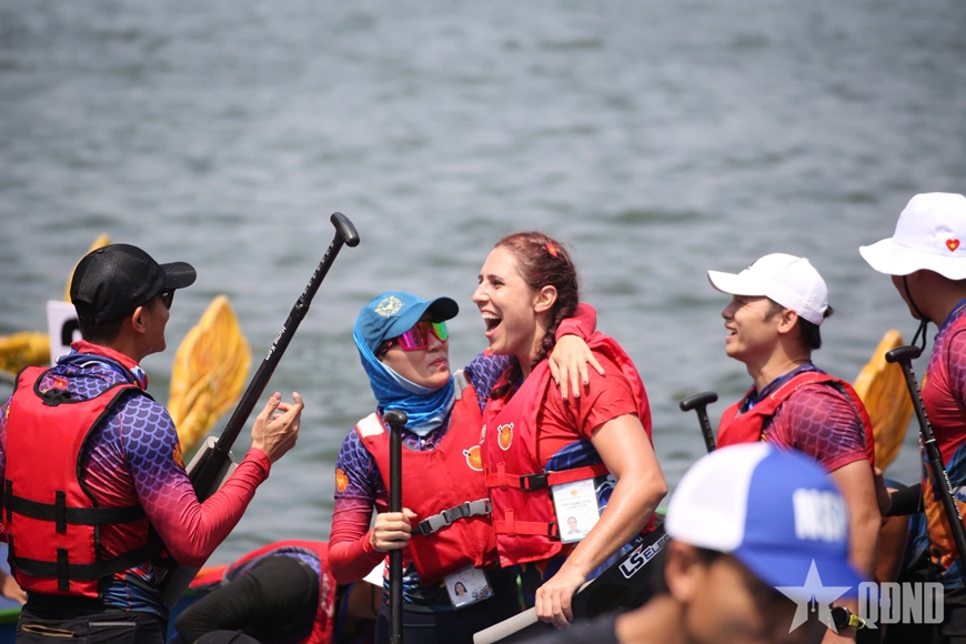 Các đội thi bơi chải thuyền rồng tranh tài. |