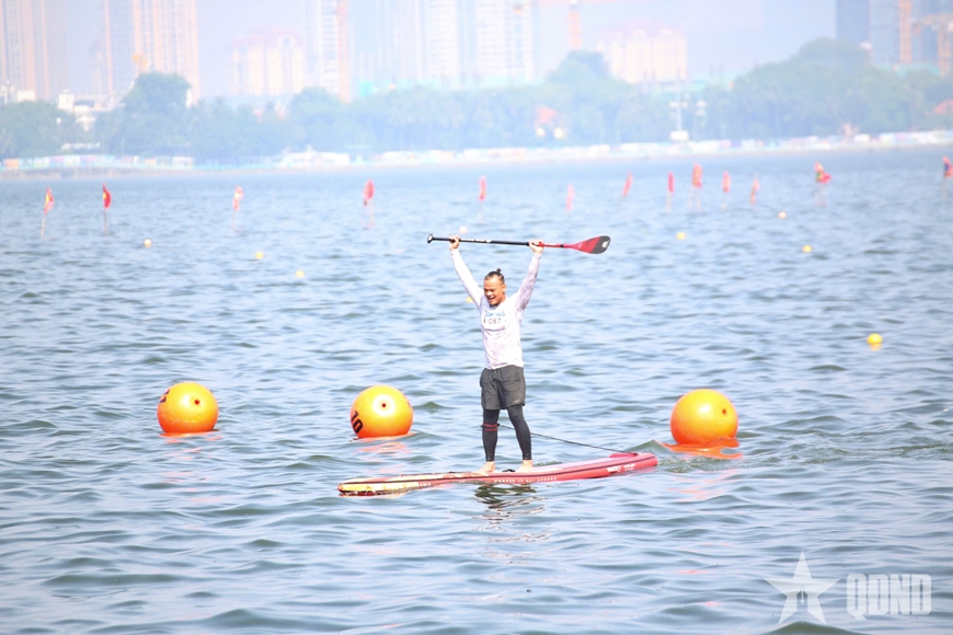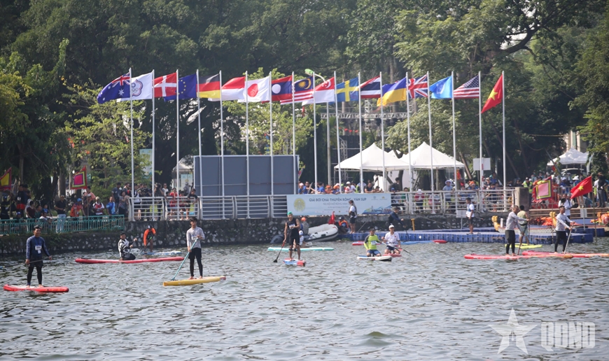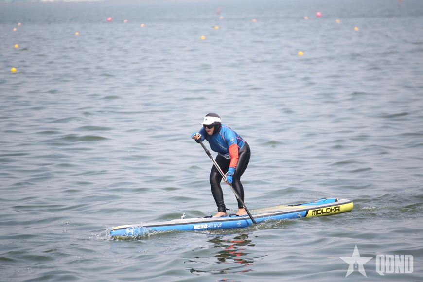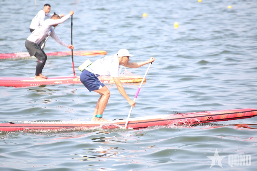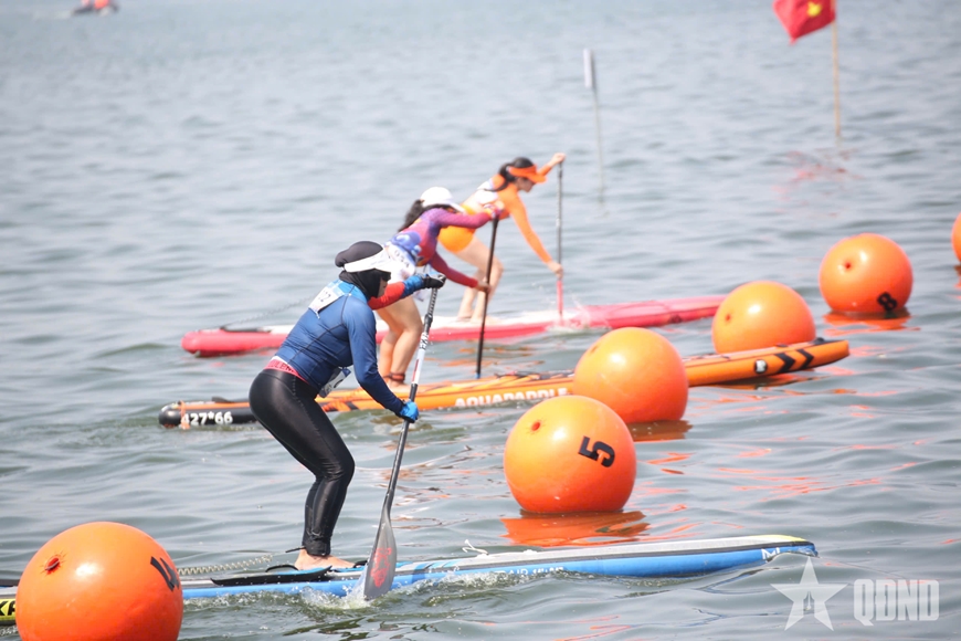 Các vận động viên chuẩn bị thi đấu phần thi SUP cho nam. |