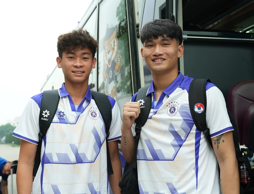 Các cầu thủ Hà Nội FC di chuyển tới Hải Phòng, sẵn sàng cho cuộc đối đầu trên sân Lạch Tray. Ảnh: Hà Nội FC