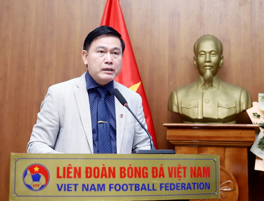 | Ông Trần Anh Tú, Phó chủ tịch Liên đoàn Bóng đá Việt Nam phát biểu khai mạc Hội nghị. Ảnh: VFF. |