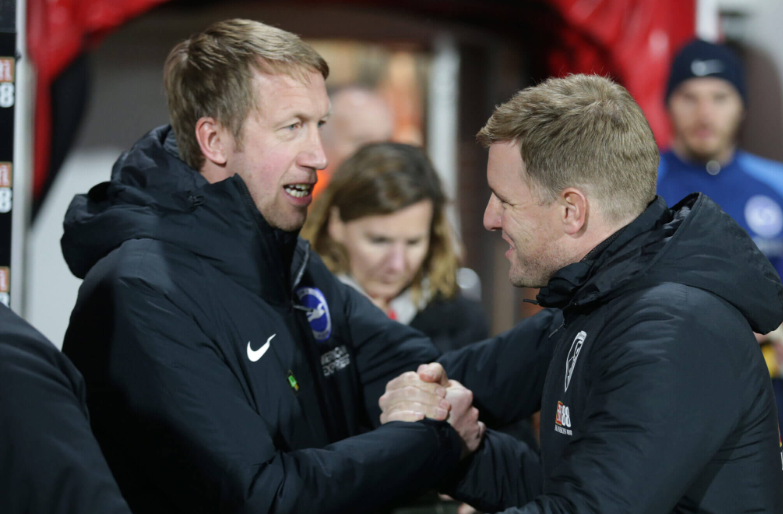 | Howe (bên phải) và Potter - hai ứng viên sáng giá cho vị trí huấn luyện viên trưởng đội tuyển Anh. Ảnh: Getty |