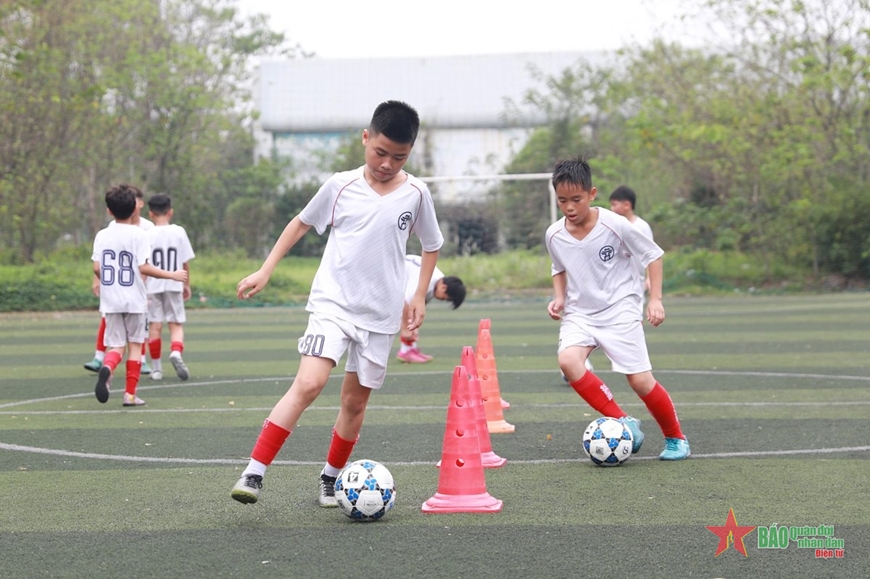 Buổi tập luyện của lứa U.11 thuộc bộ môn bóng đá Hà Nội. Ảnh: THÁI QUANG